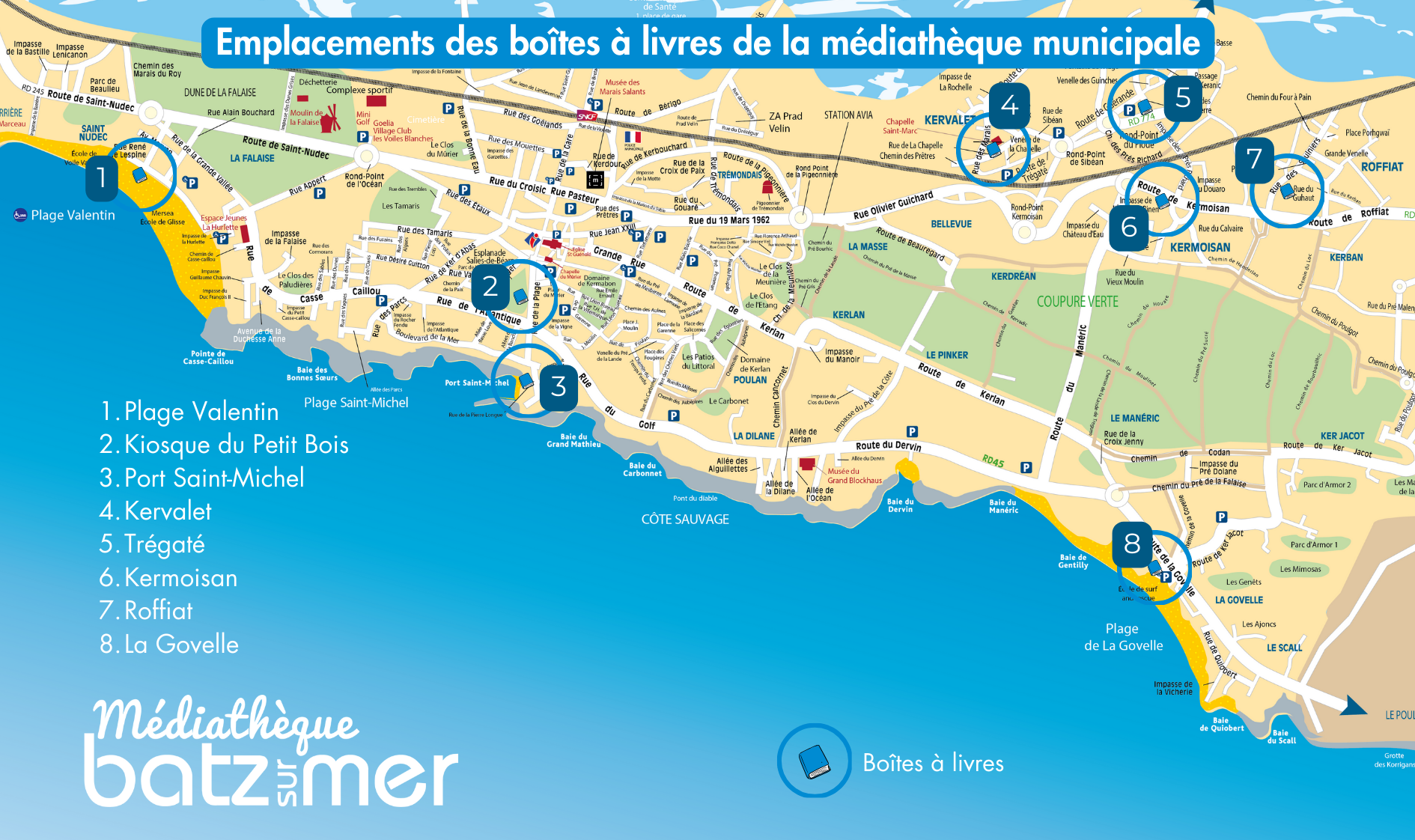 Les emplacements des 8 boites à livres